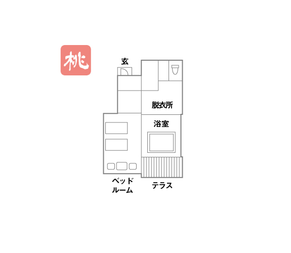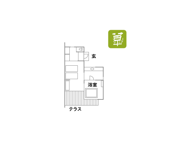 | 備 品 | TV、DVDプレイヤー、電子レンジ、冷蔵庫、温水ポット、 冷水、ドライヤー、コーヒーサーバー、アメニティ、 シャンプー、リンス、ボディソープ、タオル、バスタオル、 作務衣、アメニティセット |