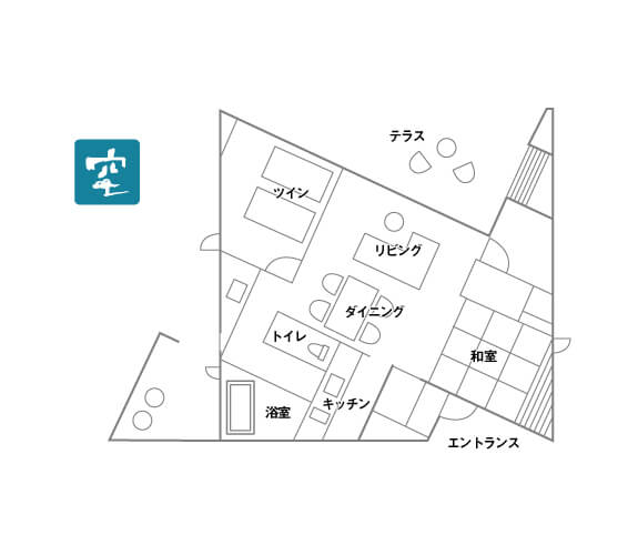 | 部 屋 | リビングダイニング・和室・洋室(ツインベッド)・キッチン、テラス |